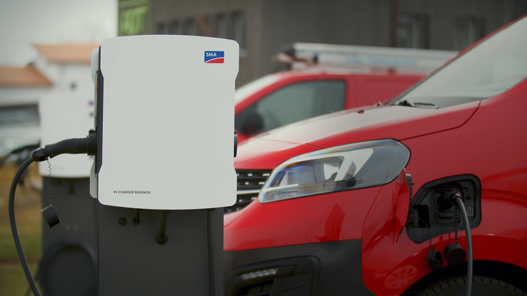 Dzięki modułowemu rozwiązaniu SMA Commercial Energy Solution Markus Heel może dodać w pełni zintegrowaną infrastrukturę ładowania do swojej istniejącej instalacji fotowoltaicznej. Dzięki temu ładuje flotę pojazdów elektrycznych własną energią ze słońca.