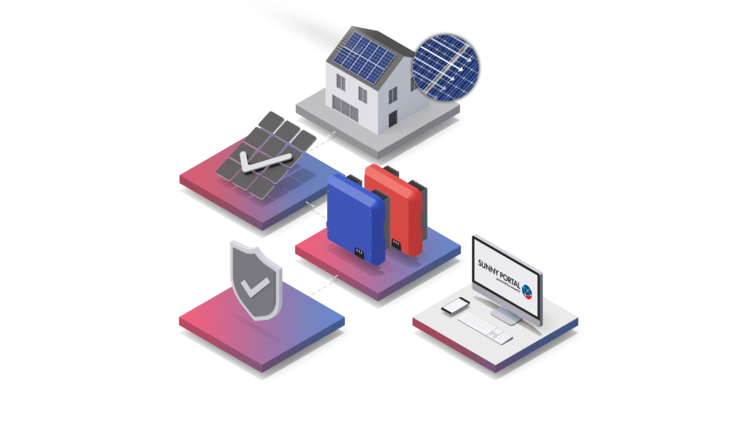 Falownik SMA z rodziny Sunny Tripower albo Sunny Boy to centralny element SMA Home Energy Solution. Przekształca on wytworzony przez instalację solarną mieszczącą się na dachu prąd stały na prąd zmienny, zgodnie z potrzebami gospodarstwa domowego i sieci elektroenergetycznej. Zapewnia on przy tym optymalne wykorzystanie energii, tak aby na potrzeby gospodarstwa domowego nie trzeba było pobierać zbyt dużo dodatkowego prądu z publicznej sieci elektroenergetycznej. Dzięki zastosowaniu innowacyjnych technologii możliwe jest optymalne wykorzystanie energii dostarczanej przez panele nawet w przypadku zacienienia.