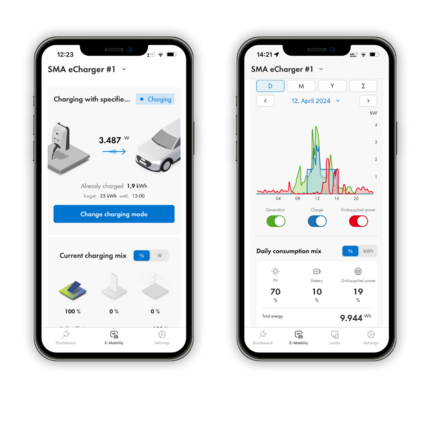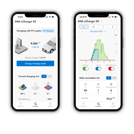 Nowa ładowarka SMA eCharger optymalnie wykorzystuje energię słońca. Dzięki zautomatyzowanemu przełączaniu faz można ładować pojazdy elektryczne samodzielnie wytworzonym prądem także przy niewielkim nasłonecznieniu.